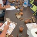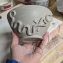 The image at the left is one of her cool wheel thrown pots that she then placed a design of Serpent Mound on. In this workshop she will show some basics of working with clay.